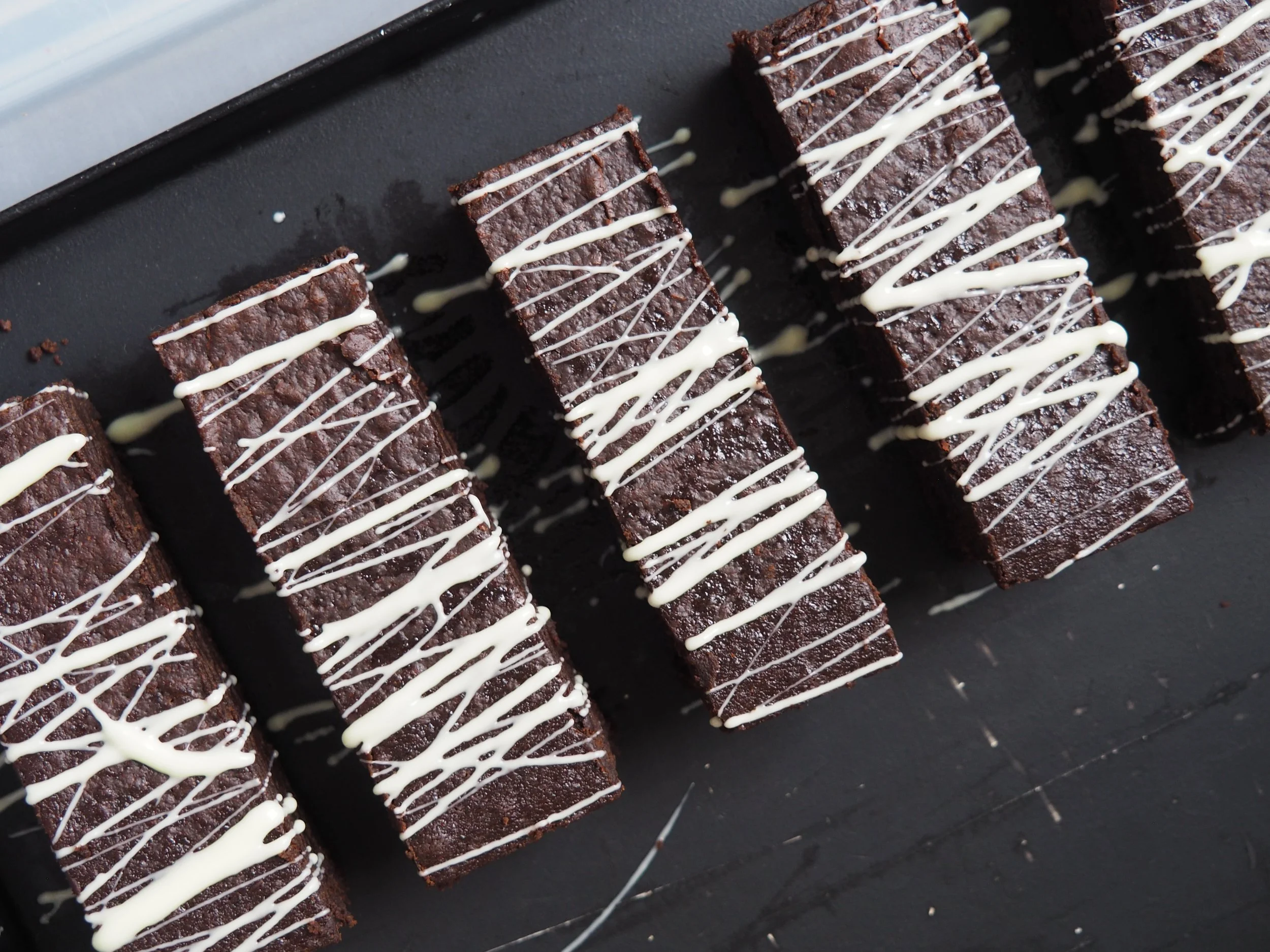 one piece of our homemade vegan brownie. our regulars know it well — it always comes with our coffee. now you can finally order it on its own. bar-sized, drizzled with white chocolate (optional)